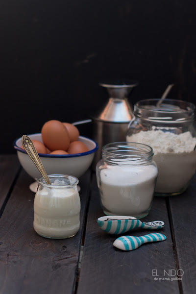Pero lo que más me gusta es que de hace con ingredientes que se suelen tener siempre en casa y que no hace falta pesarlos, la medida es el vasito del yogurt: yo tengo uno de cristal guardado para estas ocasiones.