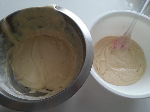 El único secreto de esta receta es, a la hora de echar la masa en el molde, que hay que ir intercalando los colores, pero por lo demás, es muy sencilla.