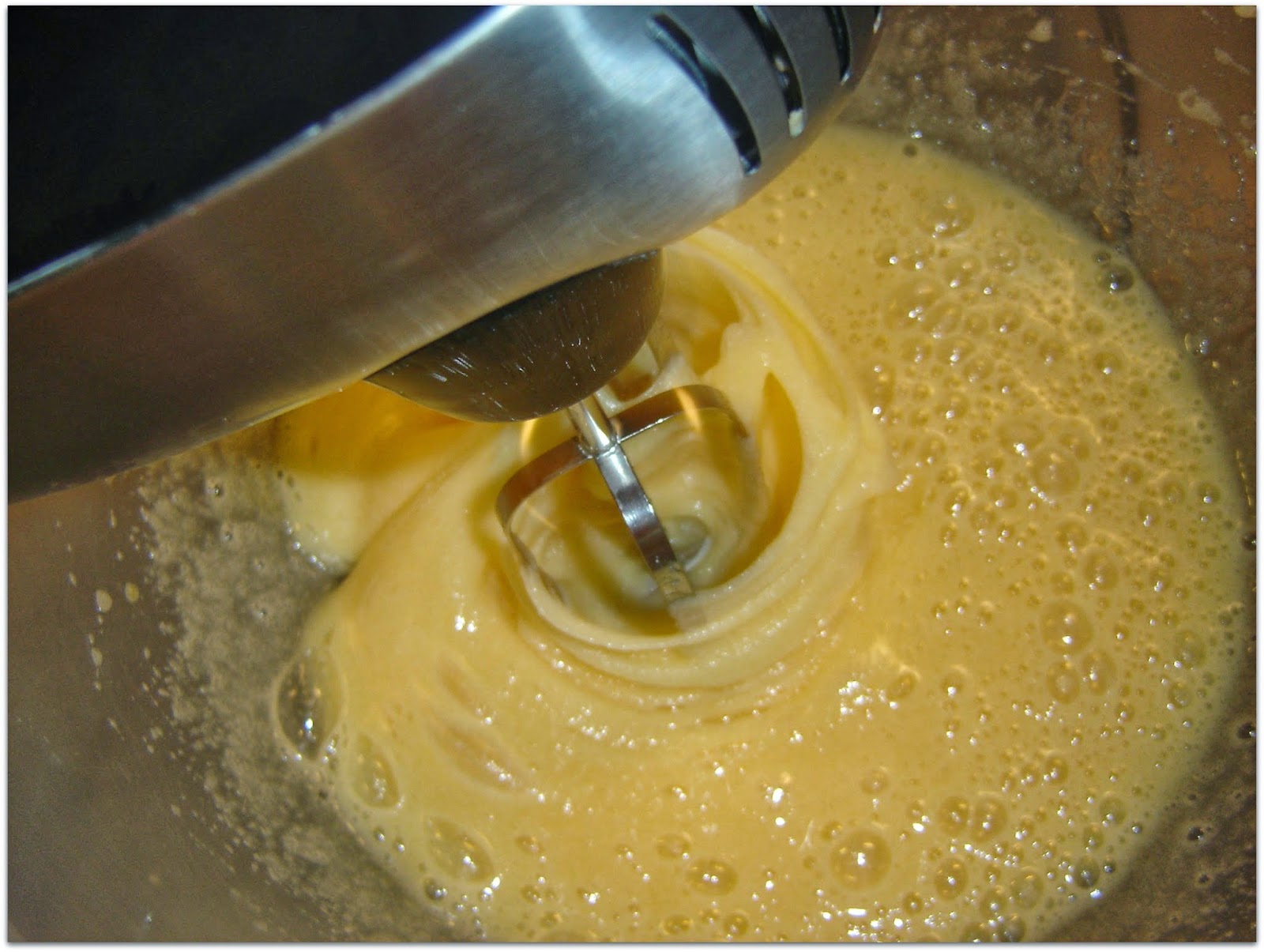 Comenxzamos batiendo los huevos con el azúcar hasta que espumee y tome cuerpo. Añadimos la cdta. de vainilla.