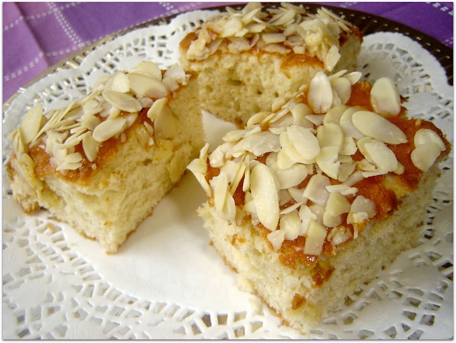 Dejamos enfriar sobre una rejilla, desmoldamos y, una vez frío, con la ayuda de una espátula, untamos un poco de mermelada en la superficie a la que luego agregaremos las almendras laminadas. Si tenéis mermelada de sobra, podéis cortar el bizcocho y rellenarlo, así estará más rico! ^^