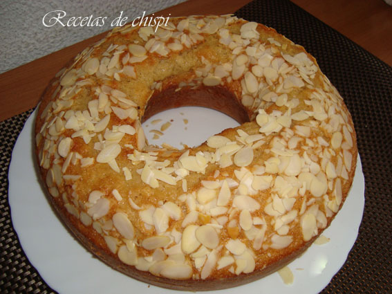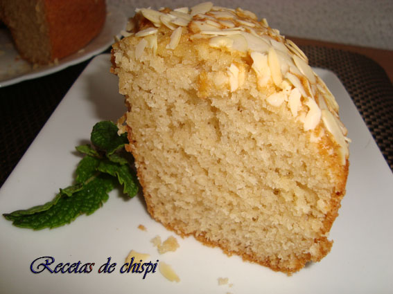 Untar el molde con mantequilla y espolvorear con un poco de harina y volcar la masa en él. Echar por encima la almendra laminada