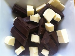 Para ello, en un cuenco ponemos el chocolate troceado y la mantequilla de la misma manera y metemos al microondas 1,5 minutos, sacar, remover y meter otro minuto.