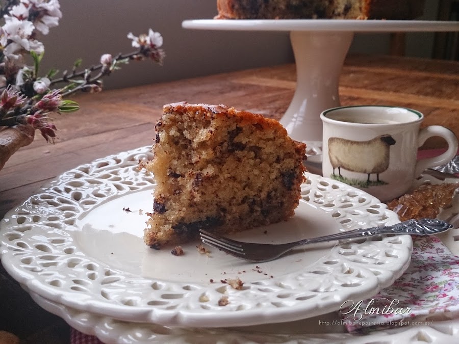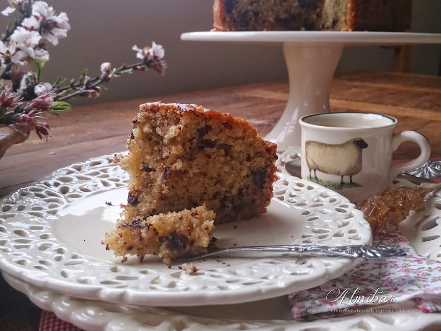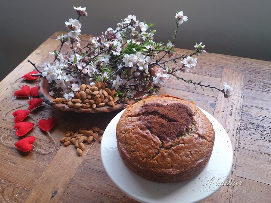 ...con lluvia de cacao en polvo tamizado encima del bizcocho...