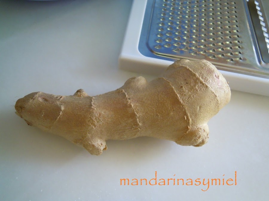 Bueno, después de esta pequeña introducción sobre el ingrediente principal, paso a la receta que he elegido. Tengo que deciros, que hasta hoy, no había utilizado nunca el jengibre, es la primera vez y no sabía ni como se rallaba....