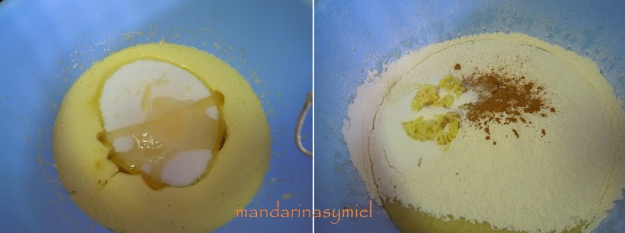 Ahora añade la harina tamizada, la sal, la levadura, la canela y el jengibre rallado.