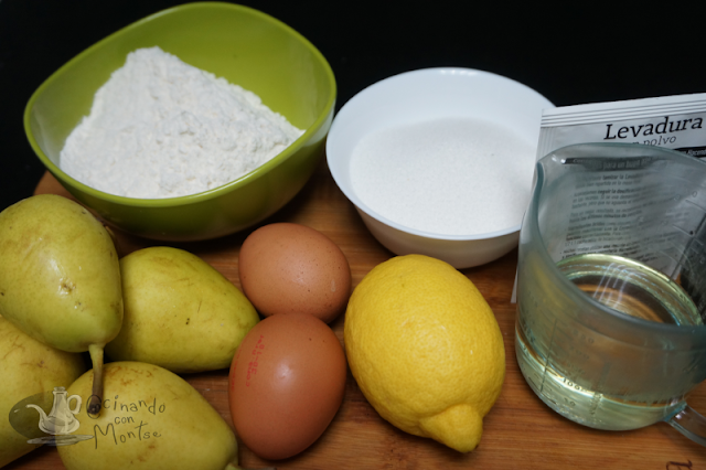 Este bizcocho es muy sencillo, es el clásico bizcocho de huevos, harina, azúcar y aceite, el toque lo da la ralladura de un limón y las peras. Si no queréis hacerlo con peras, con manzanas queda muy bueno también, aunque os sorprenderá lo bueno que queda con peras.
