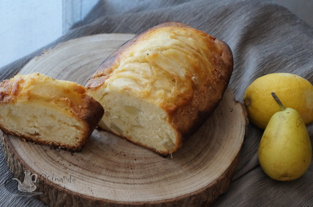 Hoy os propongo un bizcocho de peras, ideal para el desayuno o merienda, para acompañar un buen café que tanto apetece con este frío y que sabe mejor acompañado de un rico trozo de bizcocho.