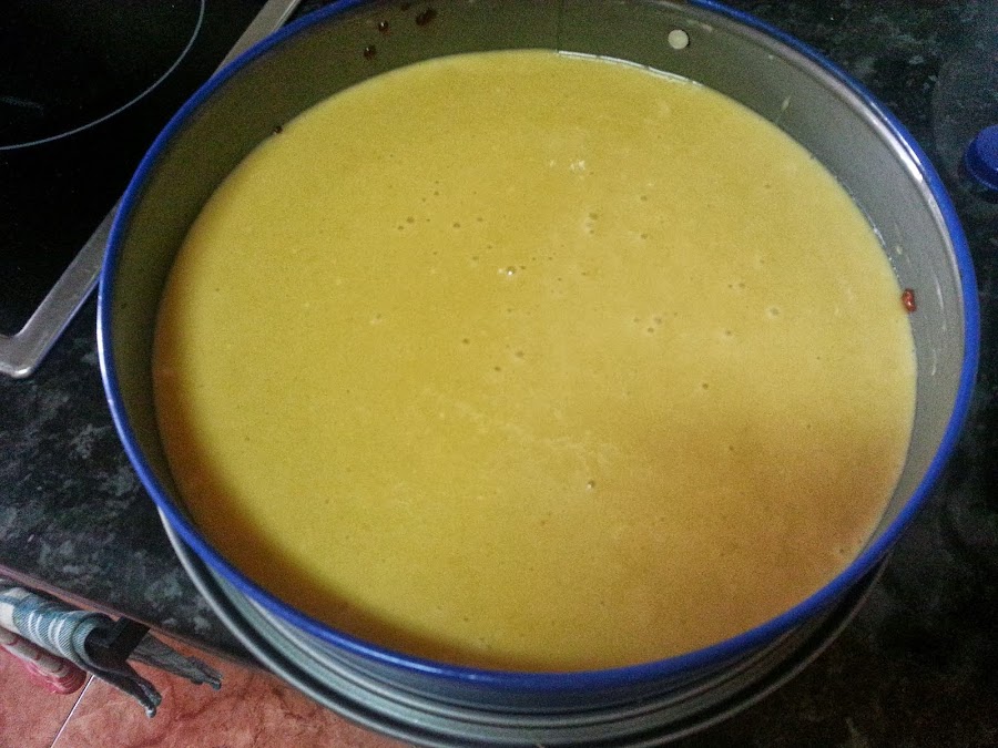 En un bol ponemos los huevos, el azúcar y lo batimos. Añadimos el yogurt, la harina y el aceite y volvemos a batir todo muy bien. Agregamos el sobre de levadura y remover con una espátula. Vertemos sobre la piña.