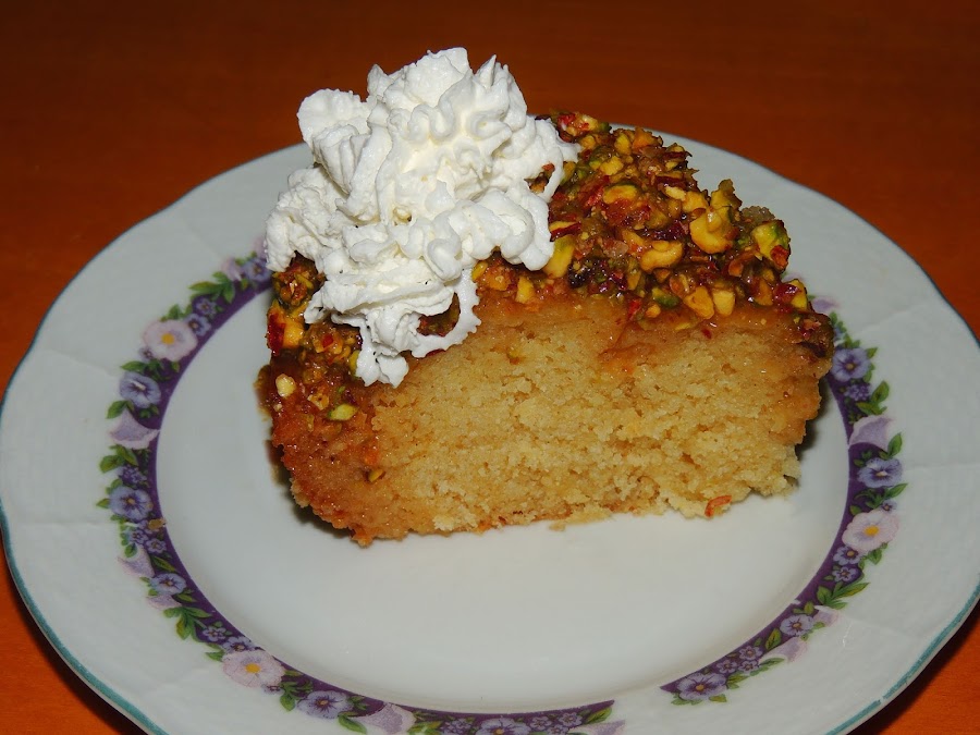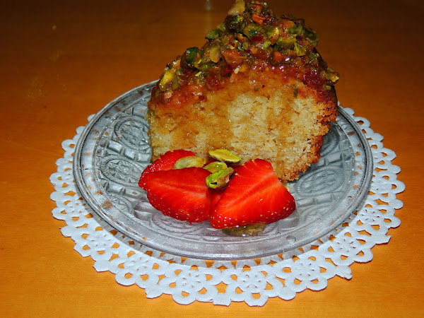 Este bizcocho es de lo más original, el sabor del bizcocho unido a los pistachos y al almíbar de cítricos lo hace único.