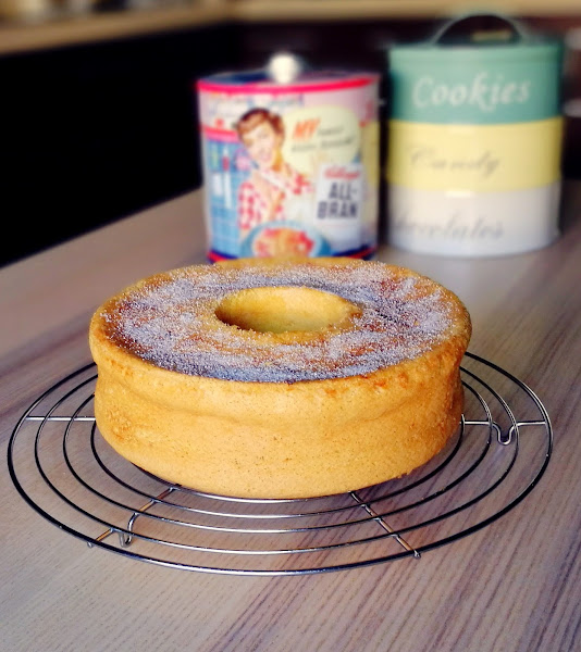 Por último, vertemos la mezcla en un molde (para éste tipo de bizcochos es recomendable usar moldes sin engrasar y con un agujero en medio, igual que si hicieramos un "Angel Food") y horneamos durante 40-45 minutos, hasta que comprobemos que está listo)