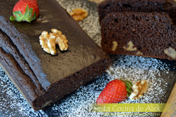 Para la presentación final podemos adornar con unas fresas, nueces y espolvorear con azucar glass por encima.