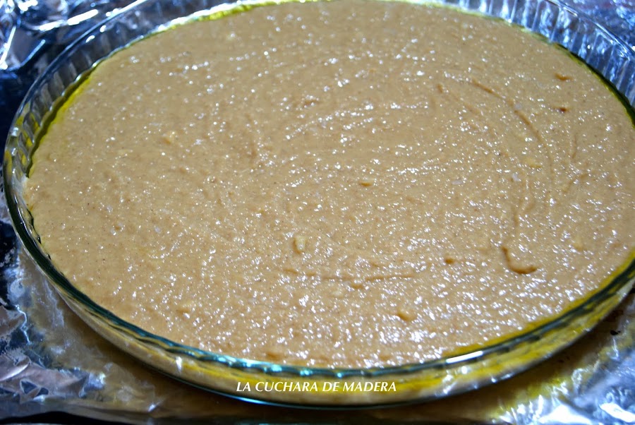 En un molde de horno, derretimos una cuchara sopera de mantequilla y con un pincel untamos todo el molde; lo dejamos en el horno unos 20 minutos.Si al pinchar con un cuchillo no sale limpio, debes dejarlo unos minutos más con el fuego a 160.