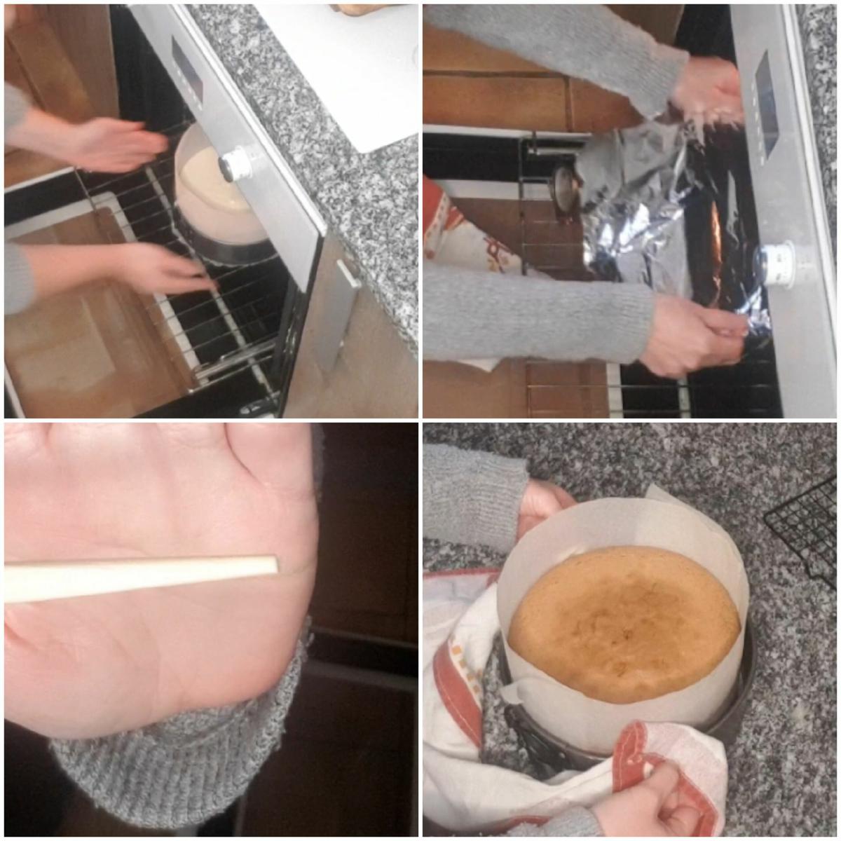 Hornear Horneamos a 170ºC con calor arriba y abajo, y el molde lo colocaremos en la última balda de abajo. Hornear durante 40/50 minutos, pero yo en mi caso a los 36 minutos lo chequeé, estaba crudo por dentro pero por fuera ya estaba doradito, así que le puse papel de plata por arriba para que no se me tostara demasiado. Hacerle la primera prueba del palillo a partir de los 30 minutos, ¡no abráis el horno antes!