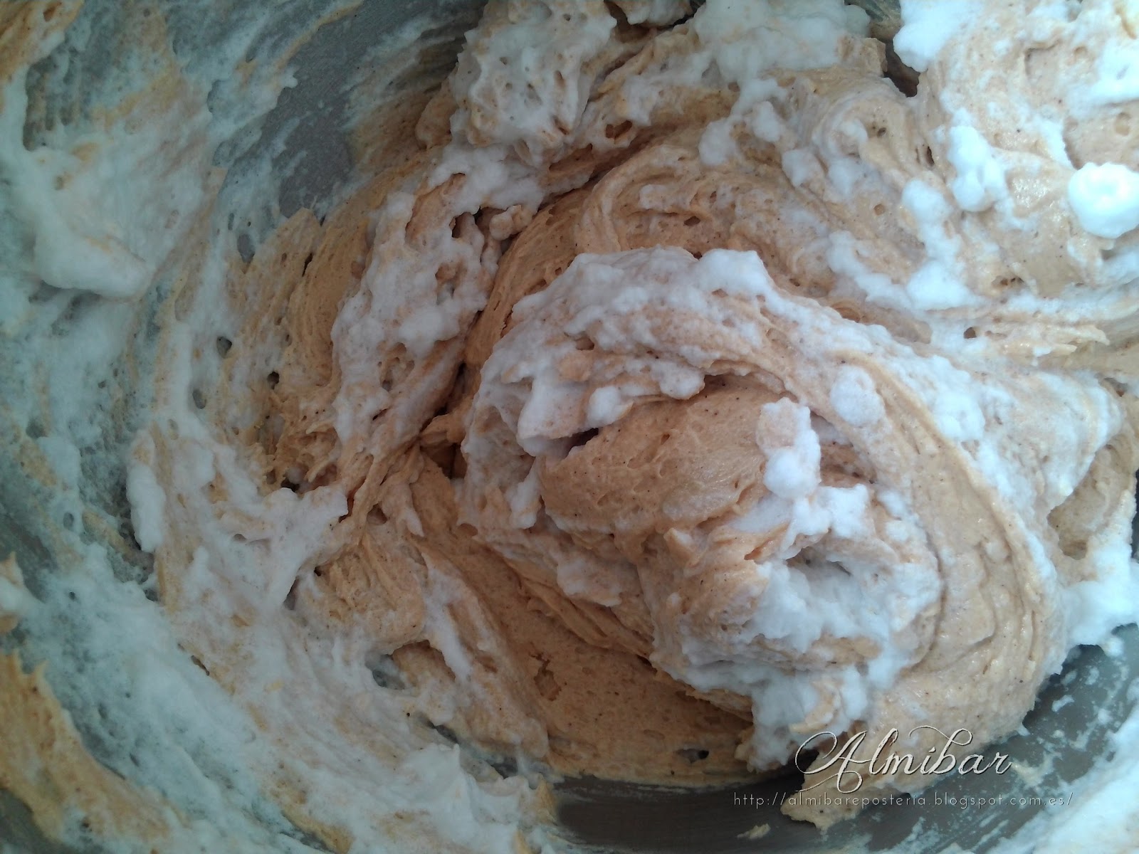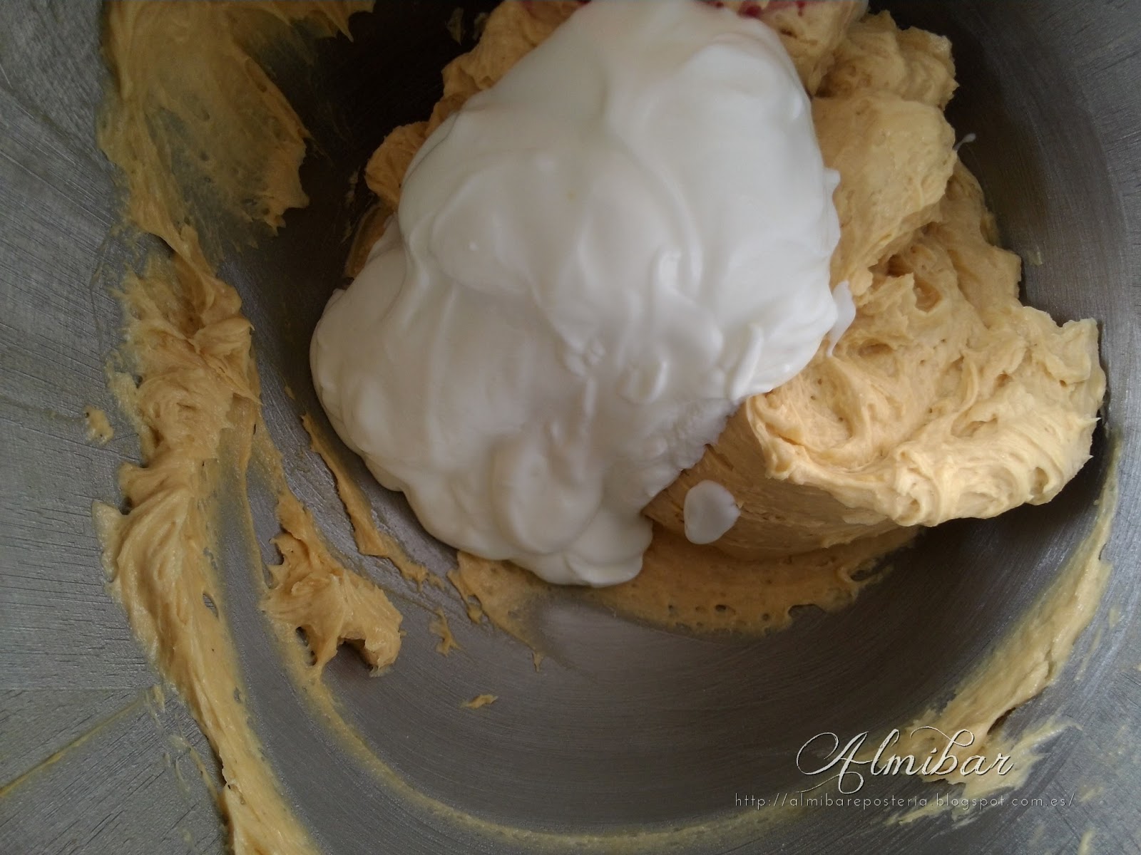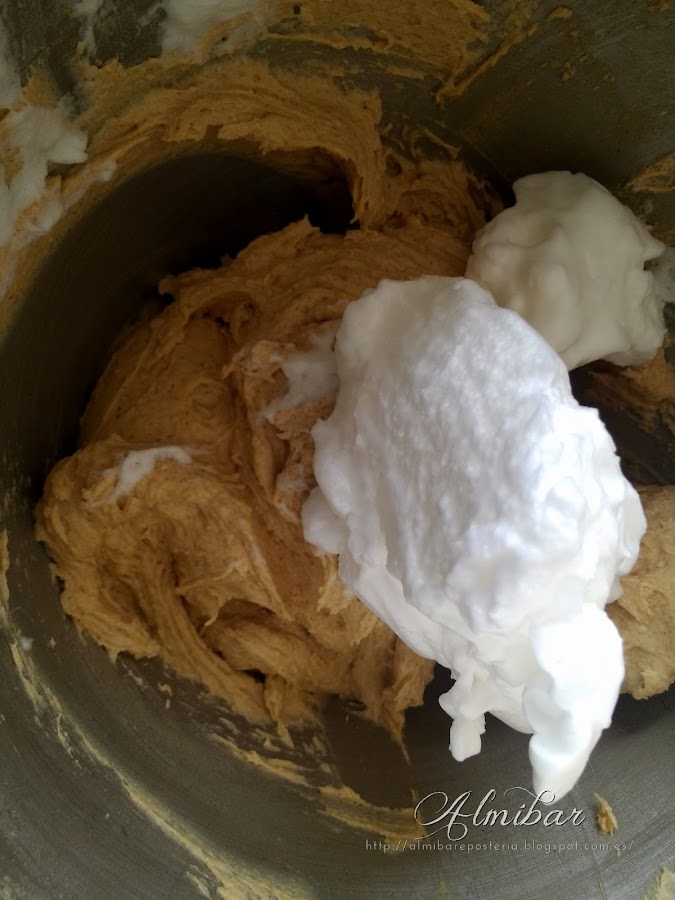 ...montas las claras con el cremor tártaro a punto de nieve en una batidora eléctrica a velocidad alta...