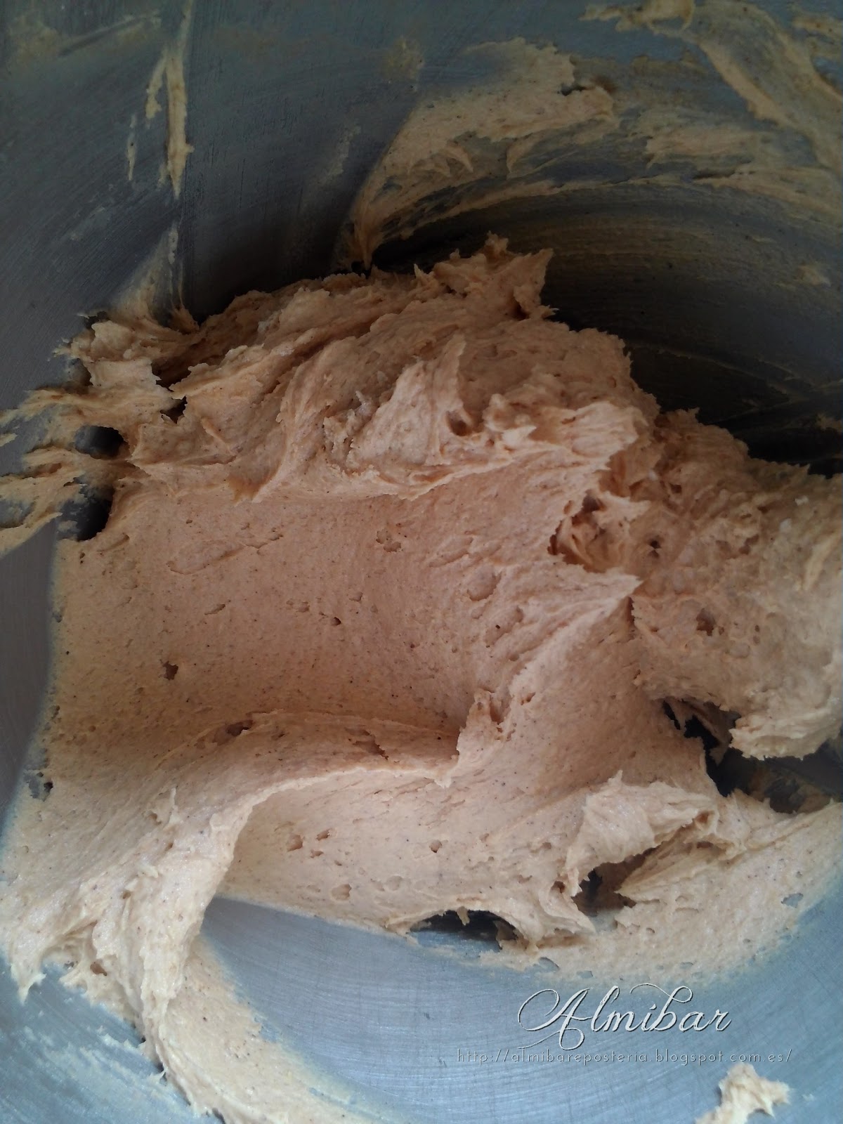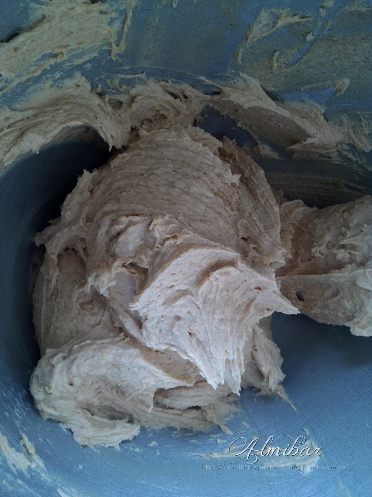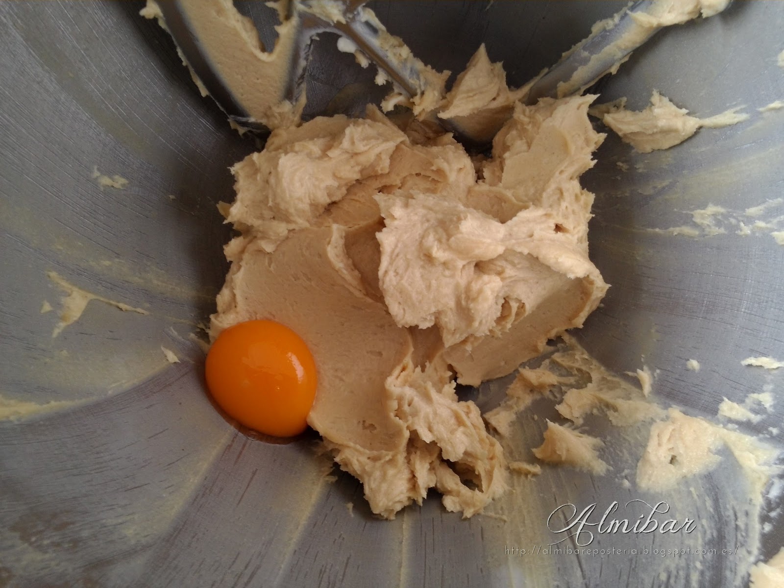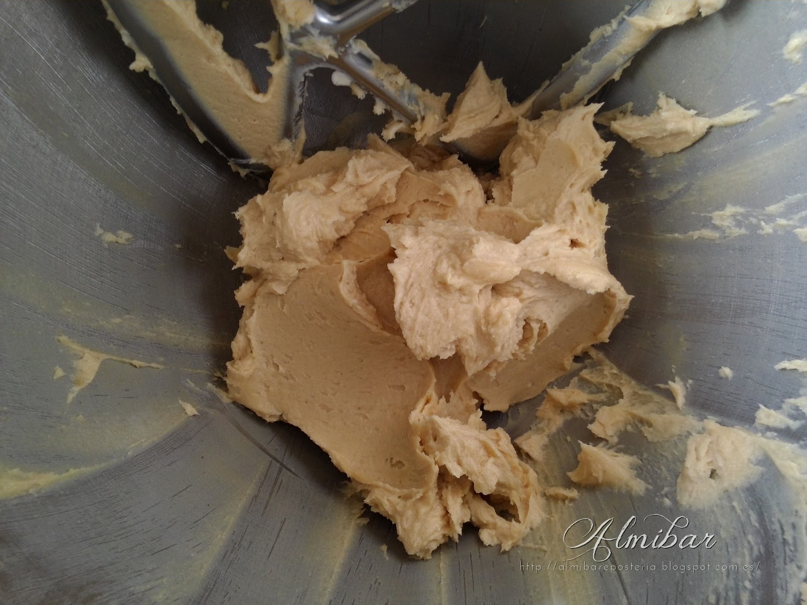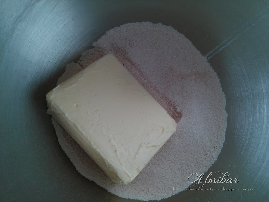 ...en una batidora eléctrica mezclas la mantequilla con el polvo de azúcar tamizado...