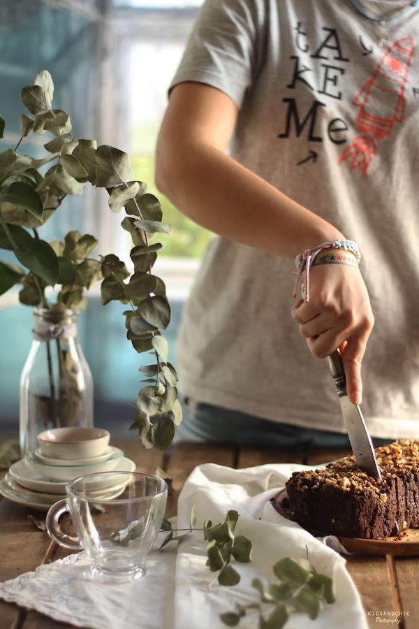 Así que al día siguiente , hablando con mi Cris "un pedacito de cielo " le dijé lo que me pasaba y que le parecía si a usaba esa mezcla líquida y deliciosa para hacer unos muffins o un bizcocho. Yo iba buscando su aprobación como reina repostera que es, pero mi Cris me dijo que no se fiaba demasiado del ese invento que yo quería hacer . En fin , que como madre de unos jabatos que comen por 20 , me puse a hacer cálculos , tiré de algún que otro libro que tengo y la verdad es que he salido airosa con este , porque no ha quedado ni un trocito .
