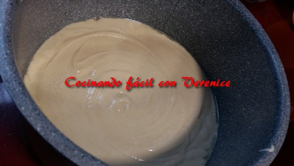 Cuando veamos que está todo integrado por partes iguales, unos 10 en total, untamos la cubeta de la olla GM con el aerosol desmoldeador(si no se tiene, mantequilla o aceite de girasol) y vertemos toda la masa en ella.