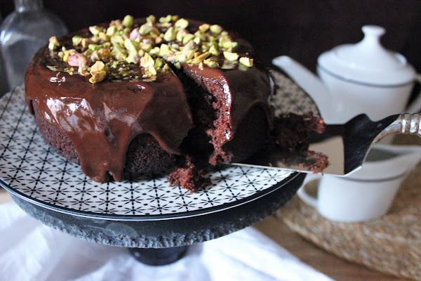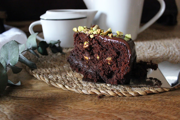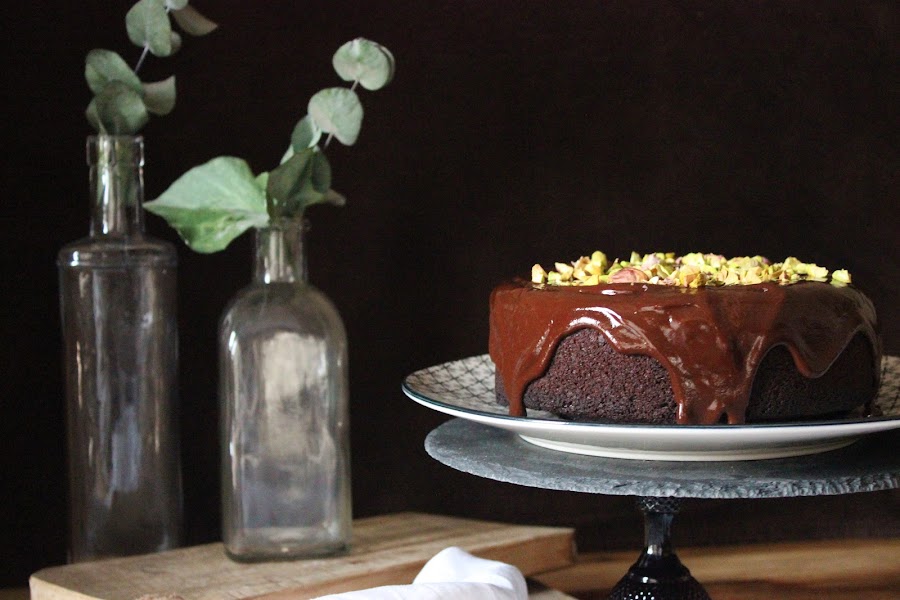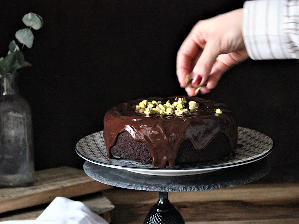 Como cobertura he utilizado un ganache de chocolate y unos pistachos ligeramente picados. La combinación es muy intensa y potente, no te dejará indiferente.