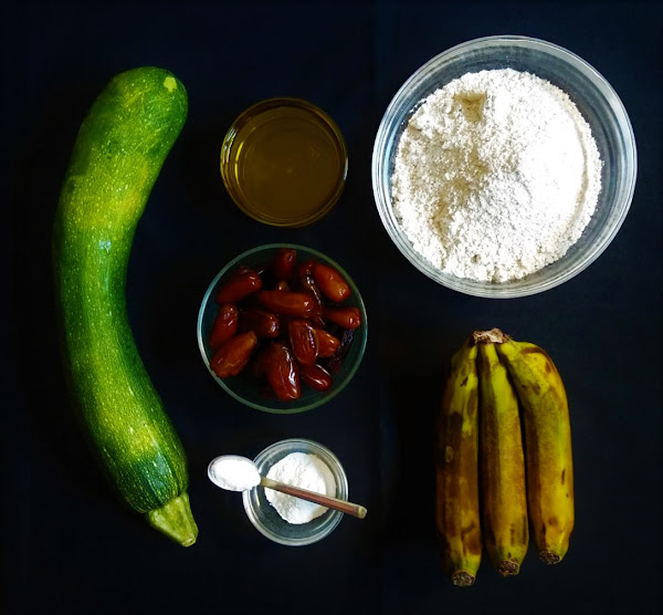 - En un recipiente amplio ponemos los plátanos, el calabacín, el aceite de oliva y los dátiles y trituramos con las cuchillas.