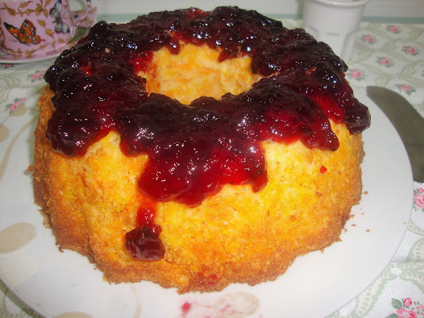 Yo finalmente he cubierto con confitura de moras porque me parecía un bizcocho típicamente inglés. El resultado es el esperado muy jugoso y con un toque cítrico muy rico.