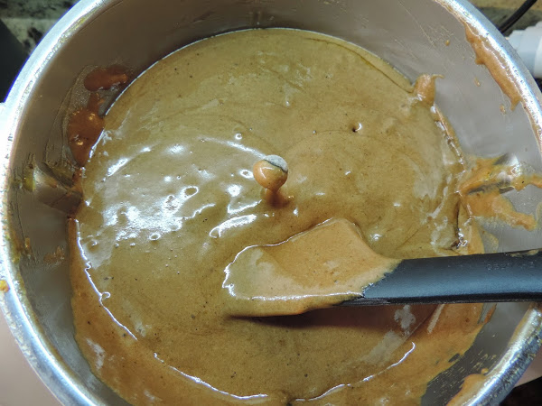 Ponemos la mariposa en las cuchillas, programar el thermomix sin tiempo, velocidad 3 1/2, añadimos por el vocal los huevos uno a uno, el aceite, la esencia de vainilla, la harina tamizada con el chocolate y con los sobres blancos, hasta que esté todo bien mezclado.
