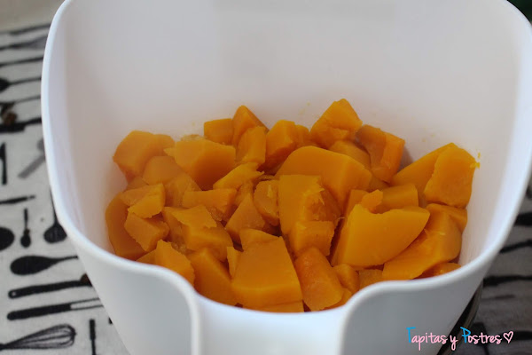 Ponemos la calabaza en el vaso de la thermomix o de una batidora eléctrica y trituramos 30 segundos a velocidad 4.