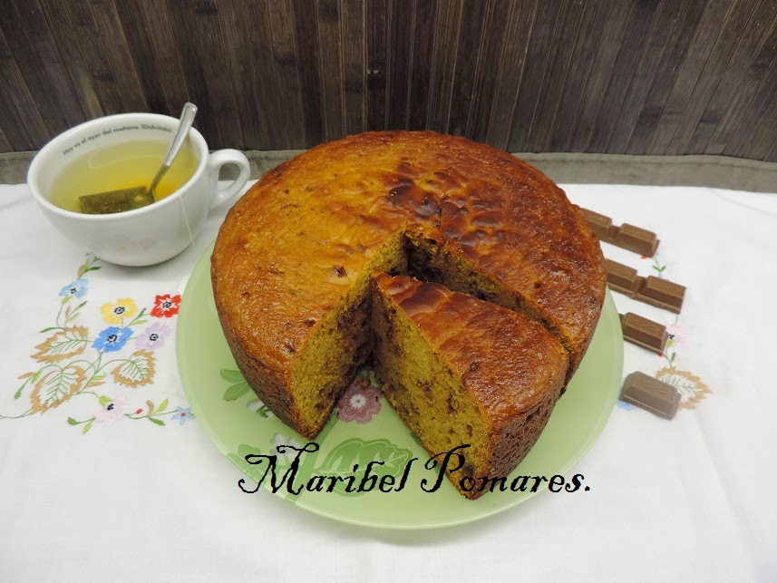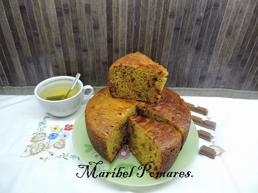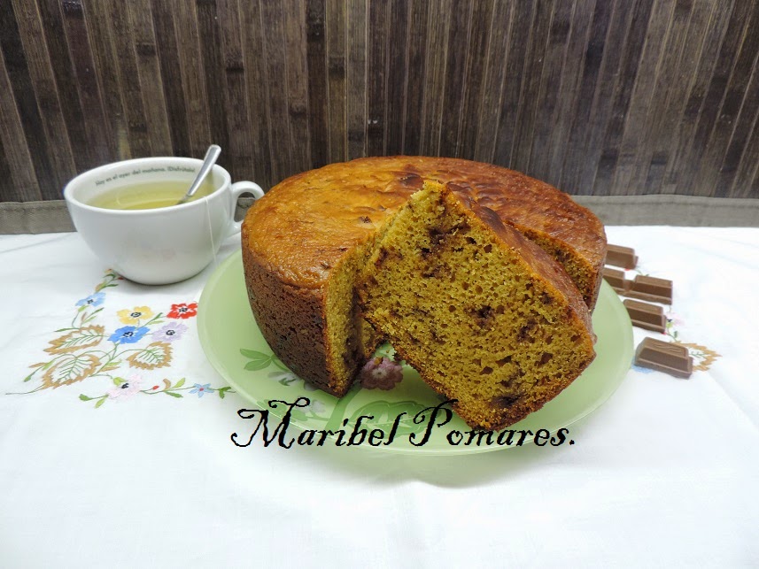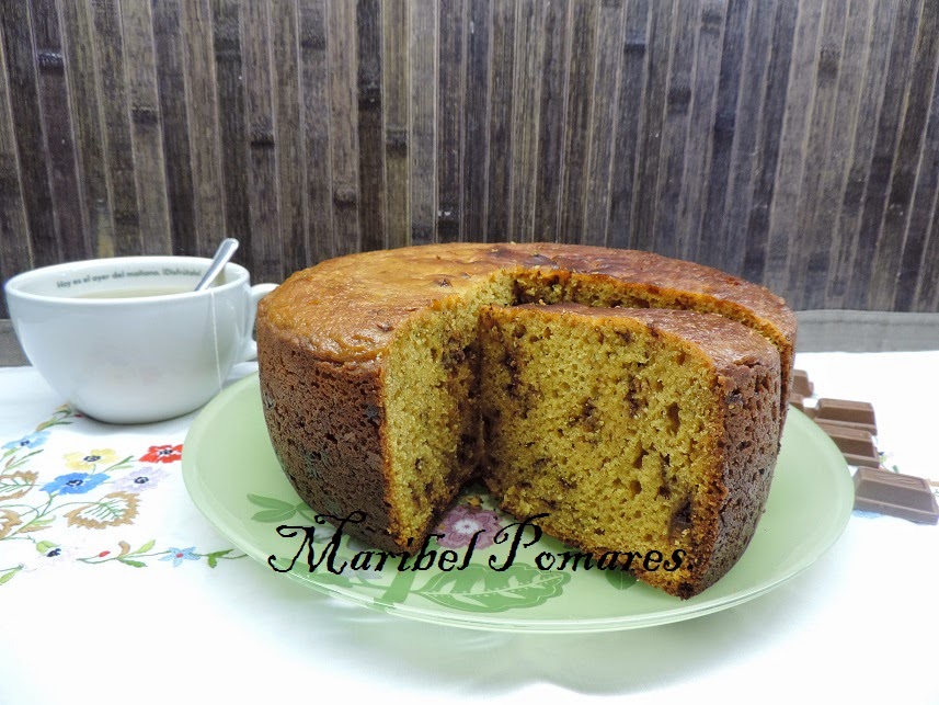 Me encanta este bizcocho de calabaza con trocitos de chocolate.