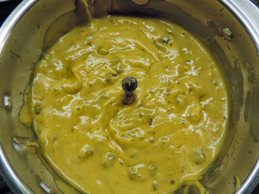 Untamos de mantequilla la cubeta de la olla y echamos dentro la mezcla.