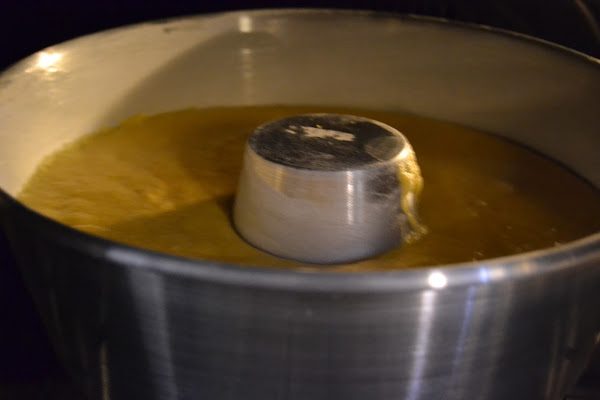 Forramos un molde con mantequilla y harina y vertemos la mezcla.