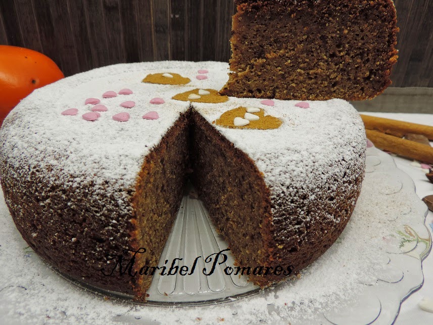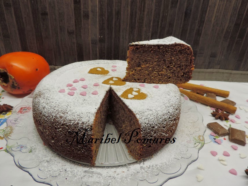 Hoy para empezar febrero y alegrarnos el día de viento que hace, y que toca tarde de sofá, mantita y peli, tenia unos caquis persimon muy maduros y me he animado con un bizcocho, y tengo que decir que me ha gustado mas de lo que esperaba. Os lo recomiendo.
