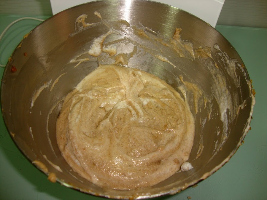 Echamos la crema de castañas a nuestra mezcla y finalmente con movimientos envolventes incorporamos las claras montadas a punto de nieve intentando que se baje lo menor posible.