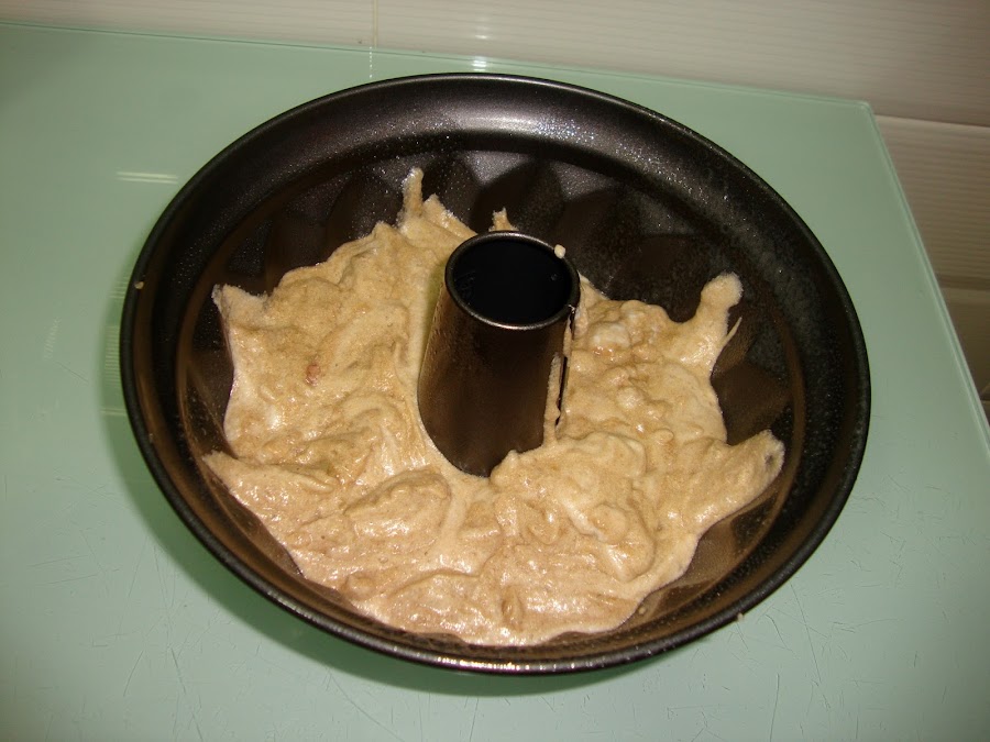 Lo ponemos en un molde engrasado y lo metemos en el horno caliente a 180ºC durante unos 35 minutos. Cuando lo saquemos del horno y pasen un mínimo de 10-15 minutos ya lo podemos desmoldar.