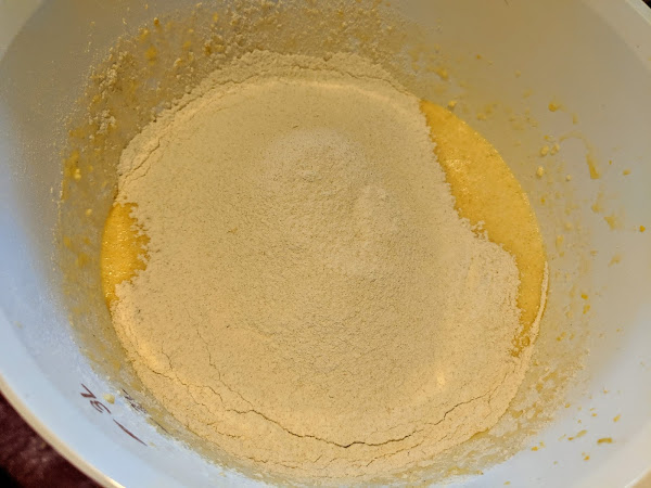 Sin dejar de batir incorporamos poco a poco la mantequilla, la esencia de vainilla y la almendra. Seguimos batiendo hasta conseguir una mezcla homogénea. Por último tamizaremos la harina con la levadura
