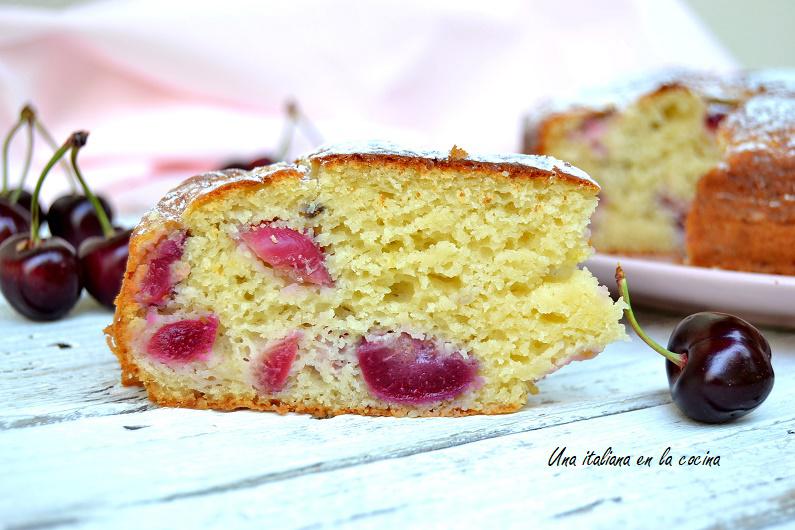 Bizcocho de cerezas y ricotta húmedo y esponjoso