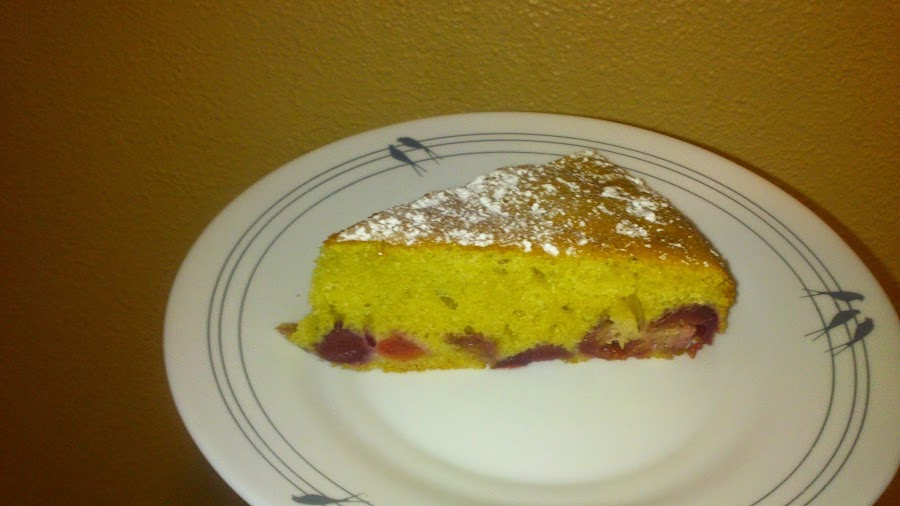 Aprovechando que ha empezado la campaña de la cerezas os propongo un bizcocho de cerezas que queda muy tierno y bueno, yo he utilizado cerezas de mi pueblo que es Planes de la Baronía (Alicante) que tienen un color y un sabor incomparables espero que os guste