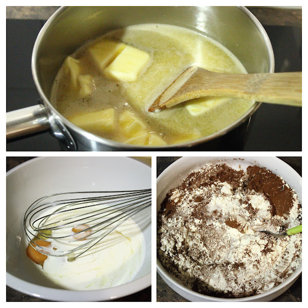 Añadir y mezclar bien la cerveza con la mantequilla a la mezcla de huevos,
