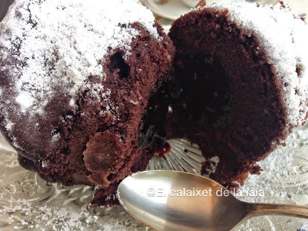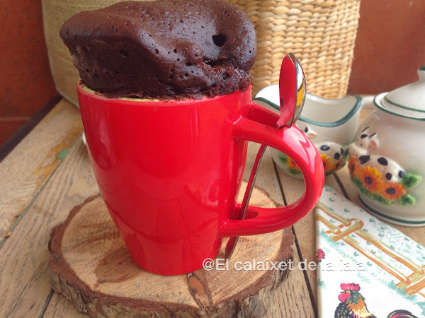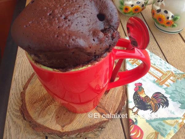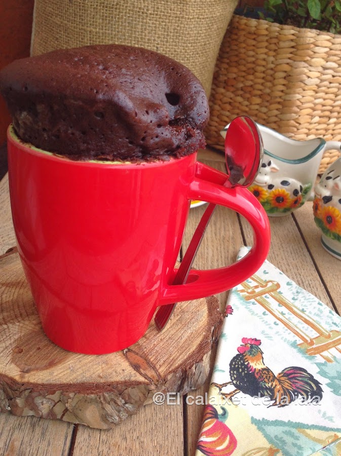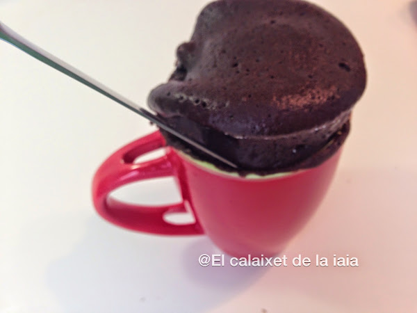 Con éstas medias salen dos tazas, pero hoy he querido hacerla en una grande, y apunto ha estado de desbordarse, así que os recomiendo preparar un dúo....mmmm.