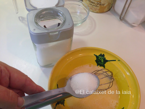 Incorporamos una cucharada de azúcar vainillado si vais a poner el bombón, si no, dos cucharadas.