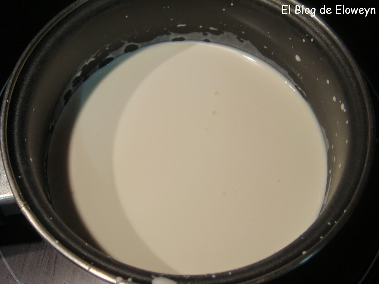 Una vez el chocolate esté medio fundido, verter la otra mitad de la leche hirviendo.