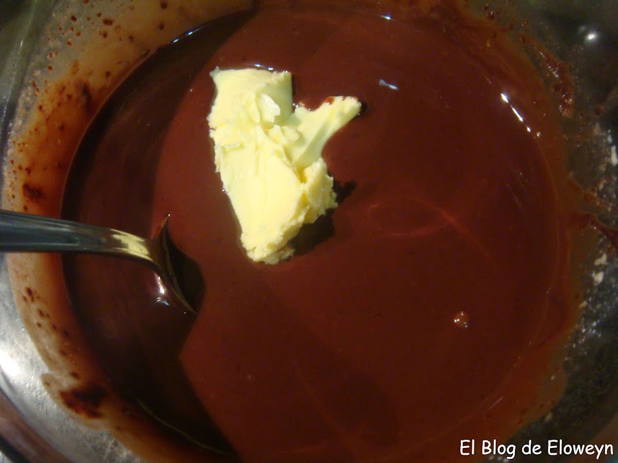 Una vez se haya fundido el chocolate, añadir los trozos de mantequilla y remover para que se integre.