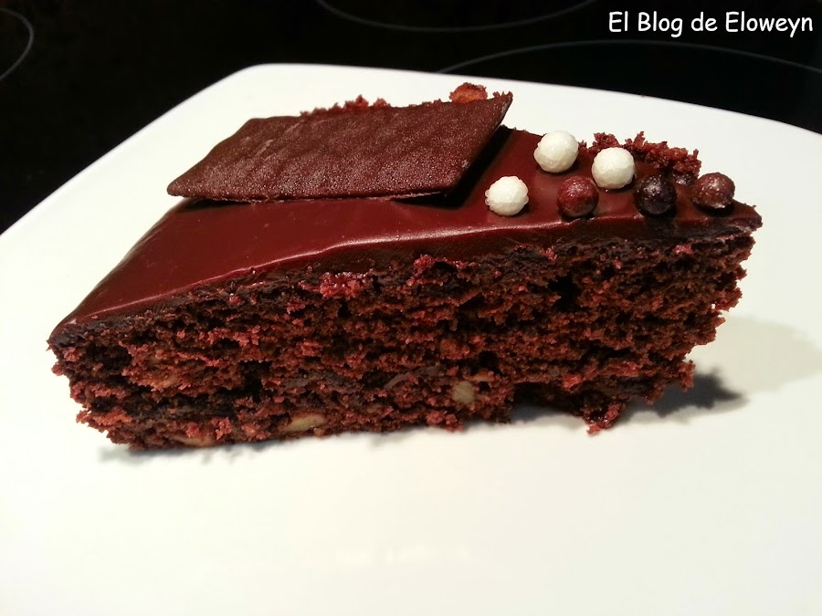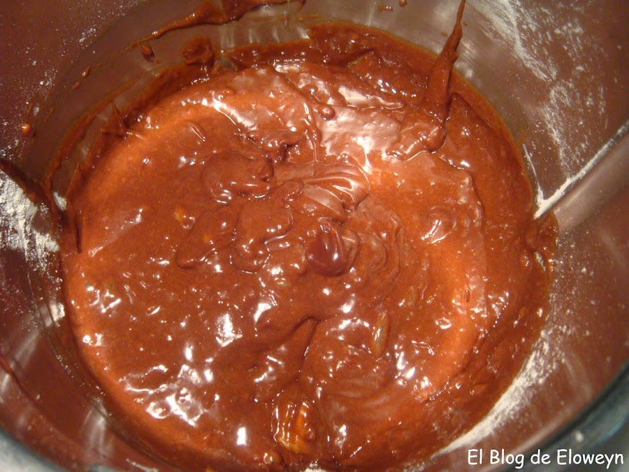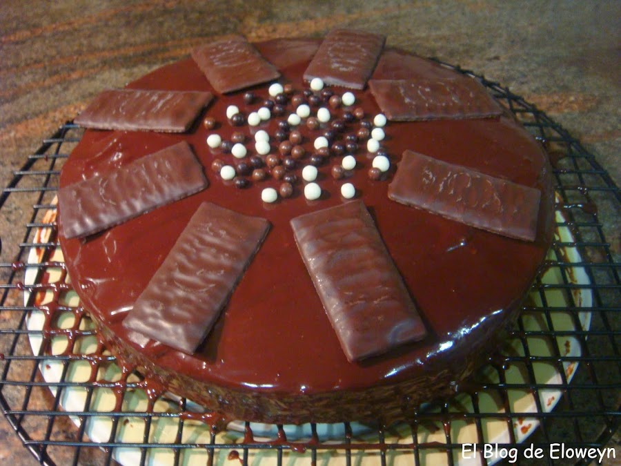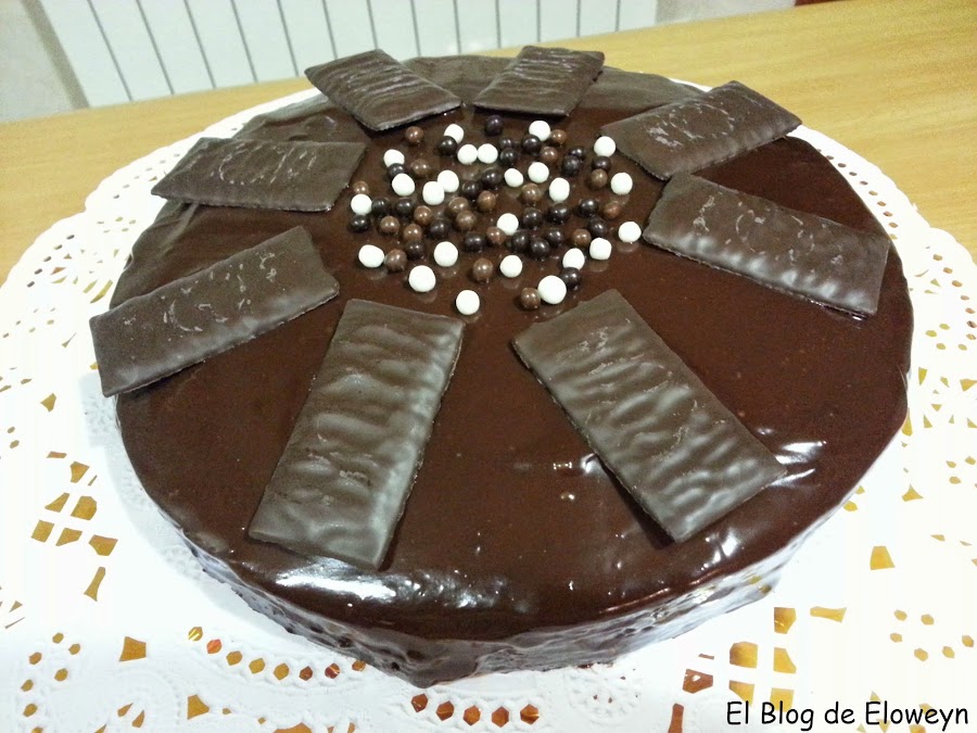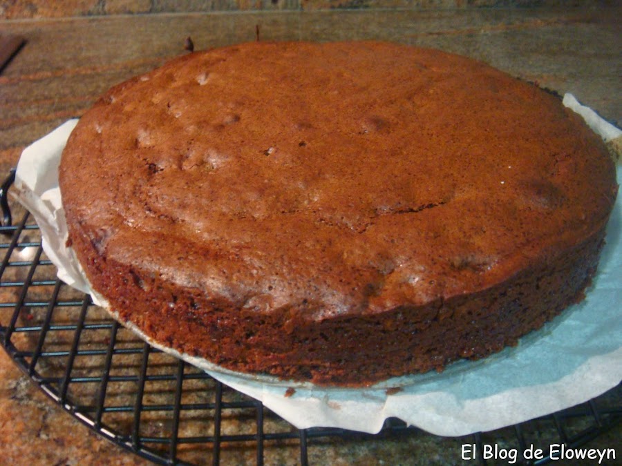 La receta original era un Brownie after eight de webos fritos, pero decidí hacerlo como bizcocho, en lugar de brownie. O sea, que modifiqué cantidades y le añadí una cobertura de ganaché de chocolate para que quedase a mi gusto.