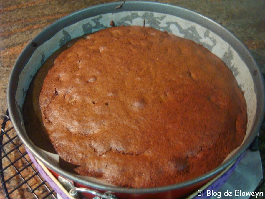 Introducir el molde en el horno. El tiempo de horneado puede variar en cada horno. Mi bizcocho necesitó 40 minutos para estar listo, pero como cada horno es un mundo, a los 30 minutos y sin parar el horno, abrid un poco la puerta del horno y clavad un palillo en medio del bizcocho. Tiene que salir seco. Si sale húmedo, cerrad el horno y volver a repetir la operación al cabo de 10 minutos. Así, hasta que el palillo os salga seco.