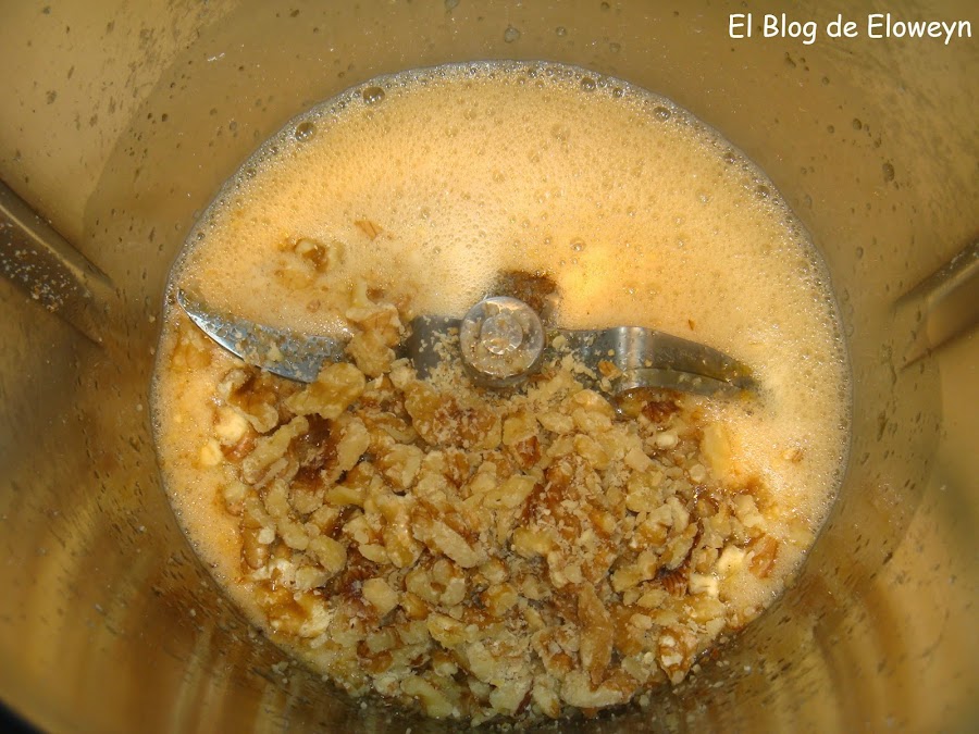 Retirar las nueces del vaso y reservar. Limpiar un poco el vaso con papel de cocina. Añadir los huevos.