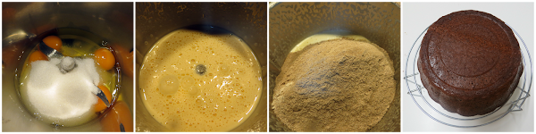 En un bol, mezclamos la harina junto con la levadura y el chocolate, tamizamos y reservamos.