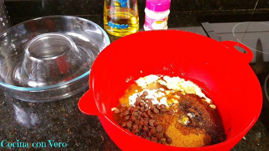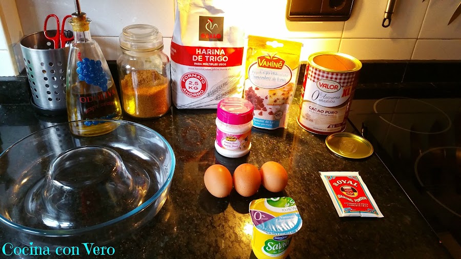 - 1 medida del envase del yogur hasta arriba de cacao en polvo.