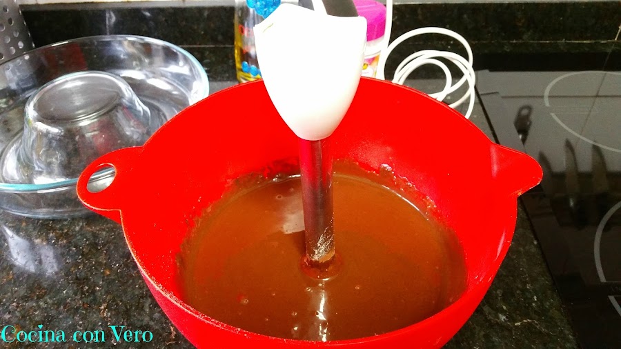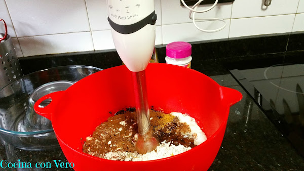 2/ En un bol introducimos todos los ingredientes. Mezclamos con una batidora eléctrica (o varillas) hasta que quede una masa homogénea.