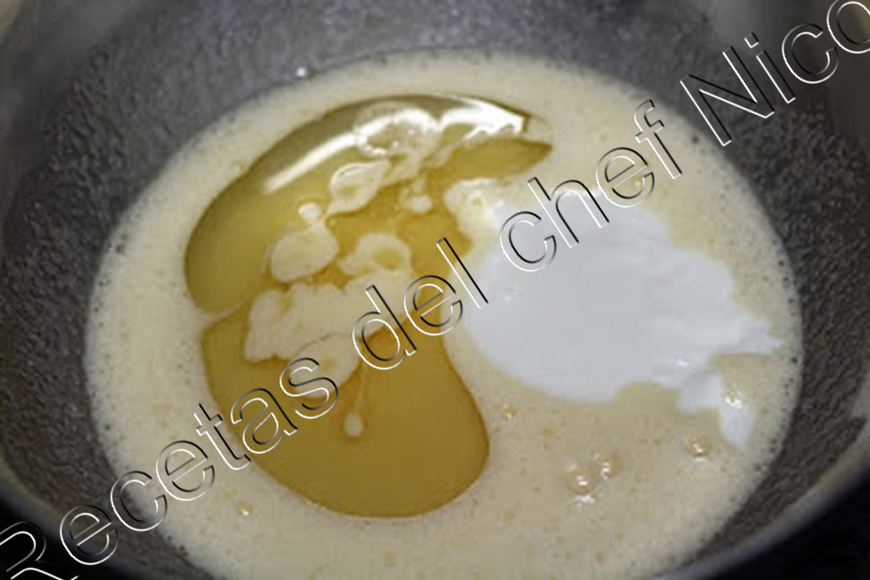 2.Añadimos el yogur, el aceite de girasol y batimos.