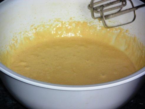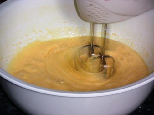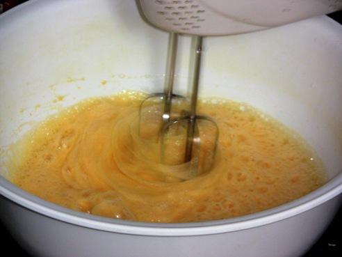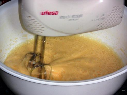 Sin más paso a contaros el proceso de elaboración, lo primero de todo es batir los huevos en un bol amplio, cuando ya han crecido lo suficiente vamos añadiendo el azúcar poco a poco, a continuación el aceite como si fuera una mayonesa, si no podemos nosotros solos, pedimos a alguien que nos ayude. Os pongo varias fotos del batido donde podréis observar la diferencia de color y textura que va tomando según batimos.