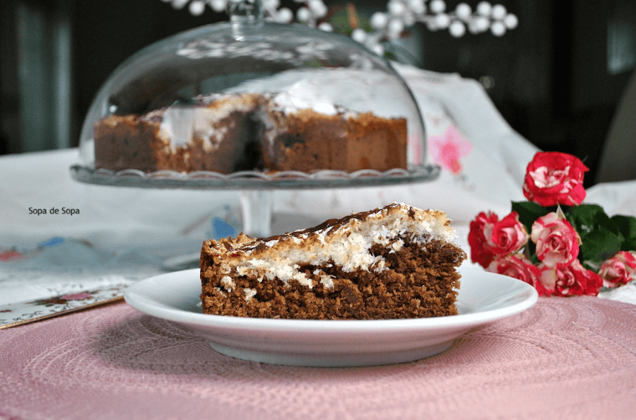 La parte de abajo es el bizcocho de chocolate y la parte de arriba es el coco.