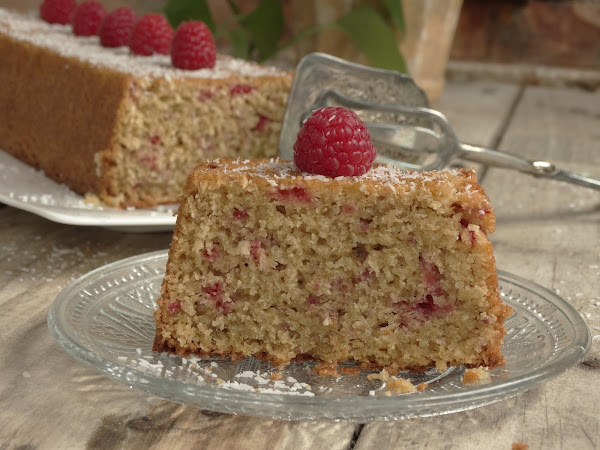 Agregamos la harina y la levadura,volvemos a mezclar y por último añadimos el coco rallado y las frambuesas,integramos bien todo con una espátula vertemos la masa en un molde rectangular que tendremos engrasado con aceite.